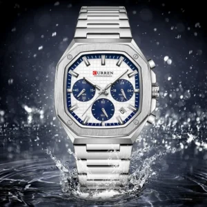 CURREN 8459 Luxury Square Waterproof Stainless Steel Chronograph Watch For Men-Silver Blue