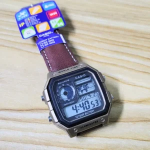 C.ASIO-A.E-1200W.H Waterproof Leather Strap Digital Mens Watch
